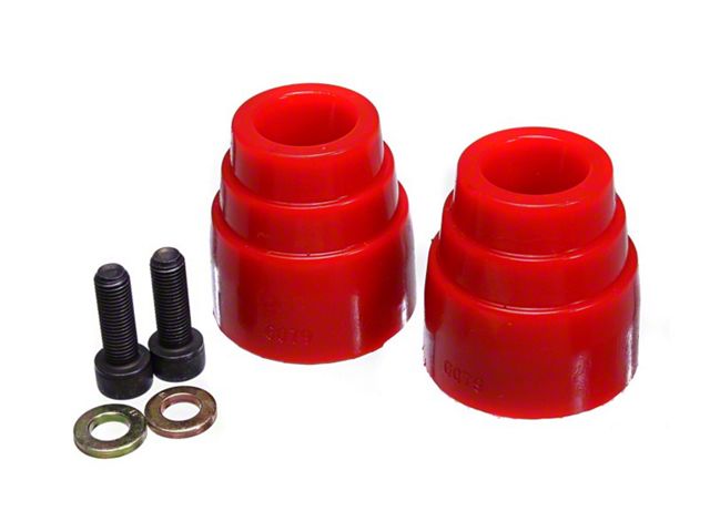 Energy Suspension performance bump stops help cushion a collapsing suspension, preventing bottoming-out and expensive vehicle damage. Hyper-Flex performance polyurethane bump stops for control arms, traction bars, leaf springs, etc. are guaranteed to last longer and operate more efficiently than original rubber stops. The smaller, general purpose bullet shaped snubber is ideal for control arms. The low profile button head is for use when clearance is limited. Our large competition race style bump stops smooth out compression better and have a large reinforced metal plate welded to the mounting plate and molded-in. Each style is specially designed for a perfect and custom fit and each style has its own durometer, hardness, characteristics. Energy's wide selection of bump stops are available in red or black color.