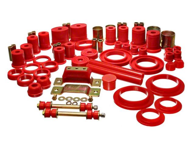 Energy's Hyper-Flex is superior performance polyurethane which has proven itself under the most demanding conditions on the race track, off-road and street performance driving, Hyper-Flex components do not wear or deteriorate from exposure to undercar chemicals such as oils and coolants and withstand atmospheric conditions like UV exposure and pollutants. Impervious to these elements, Energy's Hyper-Flex components are a great value. Not only will it outlast rubber 5 to 1 but are a cost effective performance improvement for your car or truck. Whether domestic or import, front, rear or 4WD, old or new, your vehicle will achieve that level of performance that has made Energy Suspension the most asked-for name in performance polyurethane components. All Hyper-Flex components are proudly Made in America and are available in red or black.