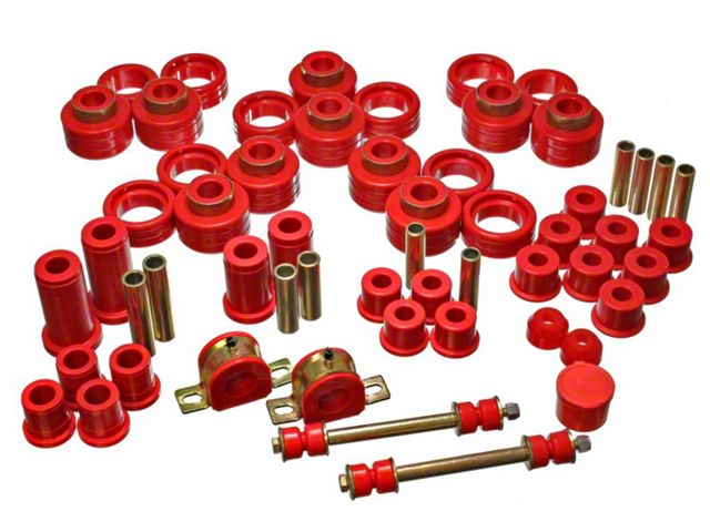 Energy's Hyper-Flex is superior performance polyurethane which has proven itself under the most demanding conditions on the race track, off-road and street performance driving, Hyper-Flex components do not wear or deteriorate from exposure to undercar chemicals such as oils and coolants and withstand atmospheric conditions like UV exposure and pollutants. Impervious to these elements, Energy's Hyper-Flex components are a great value. Not only will it outlast rubber 5 to 1 but are a cost effective performance improvement for your car or truck. Whether domestic or import, front, rear or 4WD, old or new, your vehicle will achieve that level of performance that has made Energy Suspension the most asked-for name in performance polyurethane components. All Hyper-Flex components are proudly Made in America and are available in red or black.