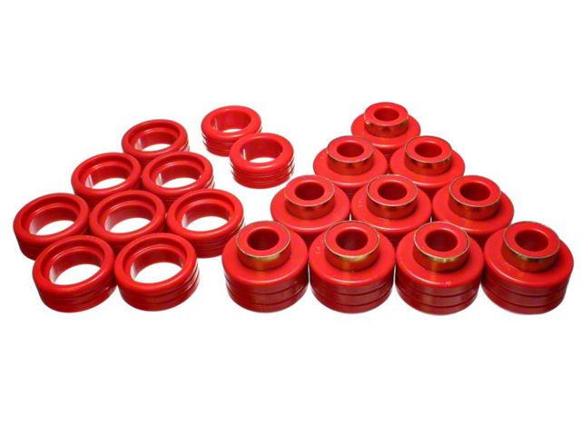 Will replace distorted and worn-out original rubber mounts to maintain car body and truck cab to bed alignment. Original rubber mounts are so soft they often crack, distort, and crush so badly they often fall off. And aluminum body mounts are too harsh for street use that they tend to break and cause other components to break. Energy's specially formulated Hyper-Flex polyurethane cab and body mounts combine the best qualities of both: they're soft enough for a smooth ride, yet rugged enough for the most demanding road or track. Most sets have a strong zinc plated steel ring molded into them - for added durability and when the application requires it.