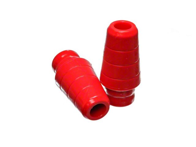 Energy Suspension performance bump stops help cushion a collapsing suspension, preventing bottoming-out and expensive vehicle damage. Hyper-Flex performance polyurethane bump stops for control arms, traction bars, leaf springs, etc. are guaranteed to last longer and operate more efficiently than original rubber stops. The smaller, general purpose bullet shaped snubber is ideal for control arms. The low profile button head is for use when clearance is limited. Our large competition race style bump stops smooth out compression better and have a large reinforced metal plate welded to the mounting plate and molded-in. Each style is specially designed for a perfect and custom fit and each style has its own durometer, hardness, characteristics. Energy's wide selection of bump stops are available in red or black color.