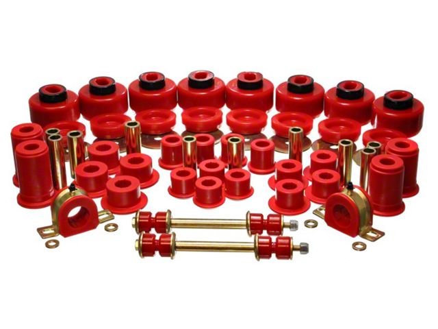 Energy's Hyper-Flex is superior performance polyurethane which has proven itself under the most demanding conditions on the race track, off-road and street performance driving, Hyper-Flex components do not wear or deteriorate from exposure to undercar chemicals such as oils and coolants and withstand atmospheric conditions like UV exposure and pollutants. Impervious to these elements, Energy's Hyper-Flex components are a great value. Not only will it outlast rubber 5 to 1 but are a cost effective performance improvement for your car or truck. Whether domestic or import, front, rear or 4WD, old or new, your vehicle will achieve that level of performance that has made Energy Suspension the most asked-for name in performance polyurethane components. All Hyper-Flex components are proudly Made in America and are available in red or black.