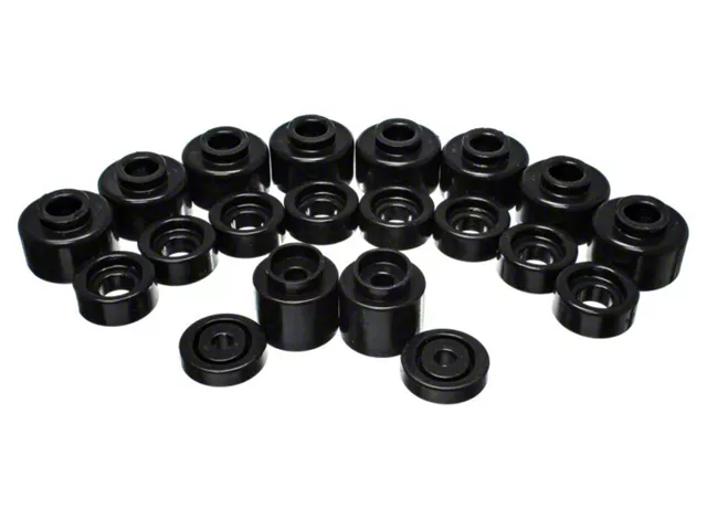 Will replace distorted and worn-out original rubber mounts to maintain car body and truck cab to bed alignment. Original rubber mounts are so soft they often crack, distort, and crush so badly they often fall off. And aluminum body mounts are too harsh for street use that they tend to break and cause other components to break. Energy's specially formulated Hyper-Flex polyurethane cab and body mounts combine the best qualities of both: they're soft enough for a smooth ride, yet rugged enough for the most demanding road or track. Most sets have a strong zinc plated steel ring molded into them - for added durability and when the application requires it.