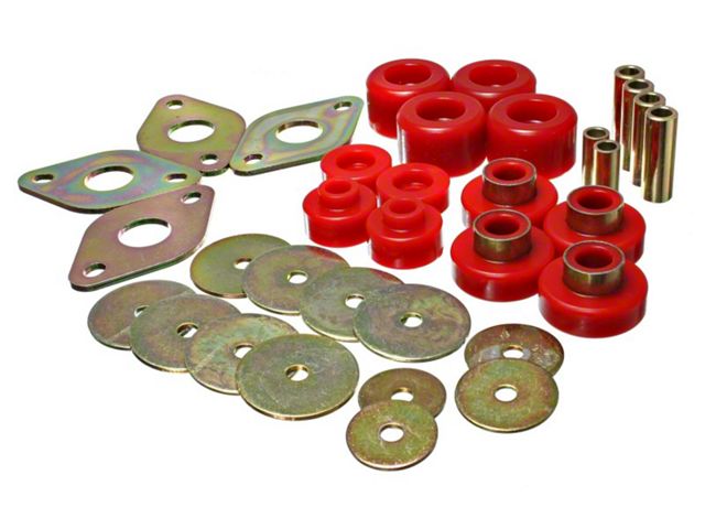 Will replace distorted and worn-out original rubber mounts to maintain car body and truck cab to bed alignment. Original rubber mounts are so soft they often crack, distort, and crush so badly they often fall off! And aluminum body mounts are too harsh for street use that they tend to break and cause other components to break. Energy's specially formulated Hyper-Flex polyurethane cab and body mounts combine the best qualities of both: they're soft enough for a smooth ride, yet rugged enough for the most demanding road or track. Most sets have a strong zinc plated steel ring molded into them - for added durability and when the application requires it.