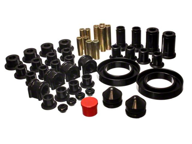 Energy's Hyper-Flex is superior performance polyurethane which has proven itself under the most demanding conditions on the race track, off-road and street performance driving, Hyper-Flex components do not wear or deteriorate from exposure to undercar chemicals such as oils and coolants and withstand atmospheric conditions like UV exposure and pollutants. Impervious to these elements, Energy's Hyper-Flex components are a great value. Not only will it outlast rubber 5 to 1 but are a cost effective performance improvement for your car or truck. Whether domestic or import, front, rear or 4WD, old or new, your vehicle will achieve that level of performance that has made Energy Suspension the most asked-for name in performance polyurethane components. All Hyper-Flex components are proudly Made in America and are available in red or black.
