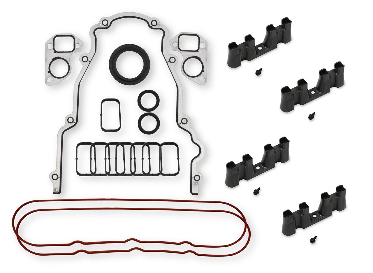 When you change a cam, you don't need a complete engine gasket set, because you don't have to take everything apart. Mr. Gasket cam change gasket sets are tailored to deliver just the pieces that you need when you swap bump-sticks. They include gaskets for the valve covers, intake manifold, oil pan, water pump, timing-chain cover, and fuel pump.