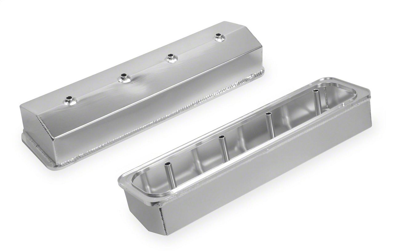 Mr. Gasket's aluminum valve covers are precision die cast for light weight and a perfect fit. Beautifully polished to a high luster, they are sure to enhance the appearance of any engine compartment. They feature an extended sealing lip to positively locate and secure the gasket and stop it from moving to eliminate oil leaks. Available with plain or ball-milled tops and include a 1 1/4 inch diameter breather hole, except where noted. Packaged two per set.