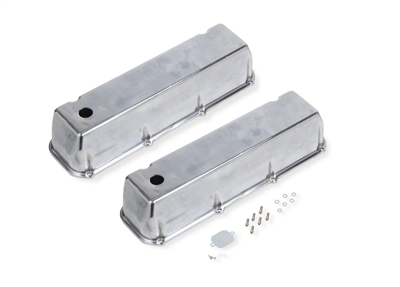 Mr. Gasket's aluminum valve covers are precision die cast for light weight and a perfect fit. Beautifully polished to a high luster, they are sure to enhance the appearance of any engine compartment. They feature an extended sealing lip to positively locate and secure the gasket and stop it from moving to eliminate oil leaks. Available with plain or ball-milled tops and include a 1 1/4 inch diameter breather hole, except where noted. Packaged two per set.