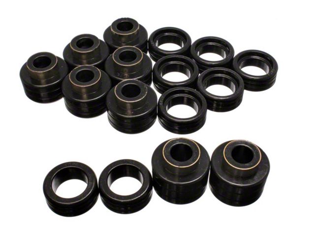 Will replace distorted and worn-out original rubber mounts to maintain car body and truck cab to bed alignment. Original rubber mounts are so soft they often crack, distort, and crush so badly they often fall off. And aluminum body mounts are too harsh for street use that they tend to break and cause other components to break. Energy's specially formulated Hyper-Flex polyurethane cab and body mounts combine the best qualities of both: they're soft enough for a smooth ride, yet rugged enough for the most demanding road or track. Most sets have a strong zinc plated steel ring molded into them - for added durability and when the application requires it.