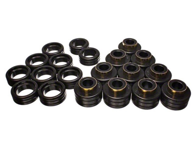 Will replace distorted and worn-out original rubber mounts to maintain car body and truck cab to bed alignment. Original rubber mounts are so soft they often crack, distort, and crush so badly they often fall off. And aluminum body mounts are too harsh for street use that they tend to break and cause other components to break. Energy's specially formulated Hyper-Flex polyurethane cab and body mounts combine the best qualities of both: they're soft enough for a smooth ride, yet rugged enough for the most demanding road or track. Most sets have a strong zinc plated steel ring molded into them - for added durability and when the application requires it.