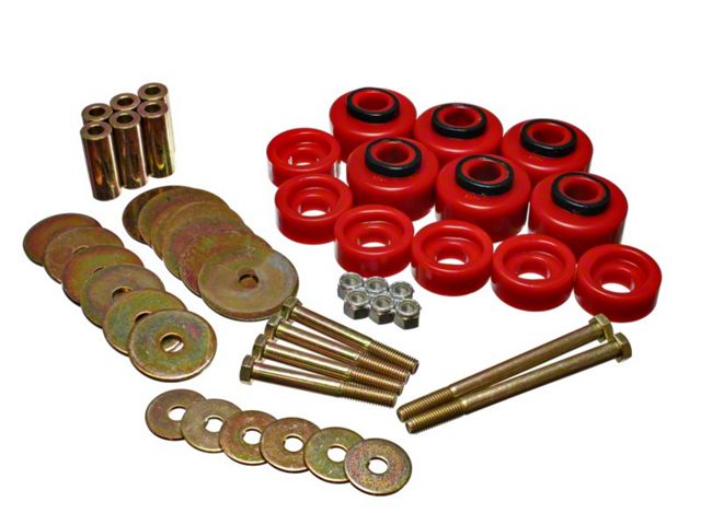 Will replace distorted and worn-out original rubber mounts to maintain car body and truck cab to bed alignment. Original rubber mounts are so soft they often crack, distort, and crush so badly they often fall off. And aluminum body mounts are too harsh for street use that they tend to break and cause other components to break. Energy's specially formulated Hyper-Flex polyurethane cab and body mounts combine the best qualities of both: they're soft enough for a smooth ride, yet rugged enough for the most demanding road or track. Most sets have a strong zinc plated steel ring molded into them - for added durability and when the application requires it.