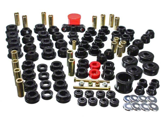 Energy's Hyper-Flex is superior performance polyurethane which has proven itself under the most demanding conditions on the race track, off-road and street performance driving, Hyper-Flex components do not wear or deteriorate from exposure to undercar chemicals such as oils and coolants and withstand atmospheric conditions like UV exposure and pollutants. Impervious to these elements, Energy's Hyper-Flex components are a great value. Not only will it outlast rubber 5 to 1 but are a cost effective performance improvement for your car or truck. Whether domestic or import, front, rear or 4WD, old or new, your vehicle will achieve that level of performance that has made Energy Suspension the most asked-for name in performance polyurethane components. All Hyper-Flex components are proudly Made in America and are available in red or black.