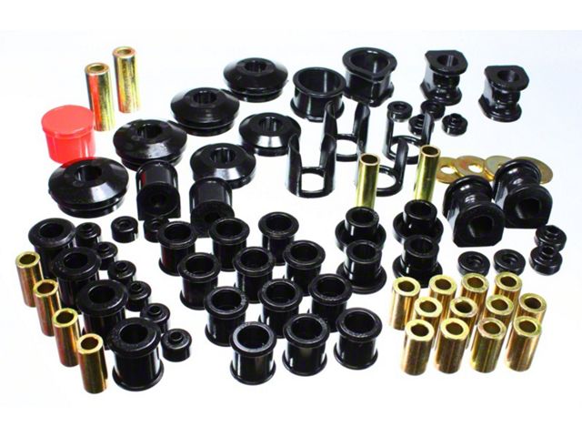 Energy's Hyper-Flex is superior performance polyurethane which has proven itself under the most demanding conditions on the race track, off-road and street performance driving, Hyper-Flex components do not wear or deteriorate from exposure to undercar chemicals such as oils and coolants and withstand atmospheric conditions like UV exposure and pollutants. Impervious to these elements, Energy's Hyper-Flex components are a great value. Not only will it outlast rubber 5 to 1 but are a cost effective performance improvement for your car or truck. Whether domestic or import, front, rear or 4WD, old or new, your vehicle will achieve that level of performance that has made Energy Suspension the most asked-for name in performance polyurethane components. All Hyper-Flex components are proudly Made in America and are available in red or black.