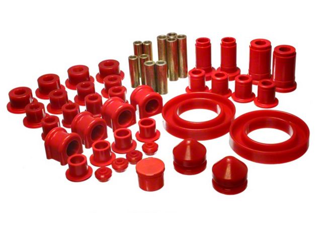 Energy's Hyper-Flex is superior performance polyurethane which has proven itself under the most demanding conditions on the race track, off-road and street performance driving, Hyper-Flex components do not wear or deteriorate from exposure to undercar chemicals such as oils and coolants and withstand atmospheric conditions like UV exposure and pollutants. Impervious to these elements, Energy's Hyper-Flex components are a great value. Not only will it outlast rubber 5 to 1 but are a cost effective performance improvement for your car or truck. Whether domestic or import, front, rear or 4WD, old or new, your vehicle will achieve that level of performance that has made Energy Suspension the most asked-for name in performance polyurethane components. All Hyper-Flex components are proudly Made in America and are available in red or black.