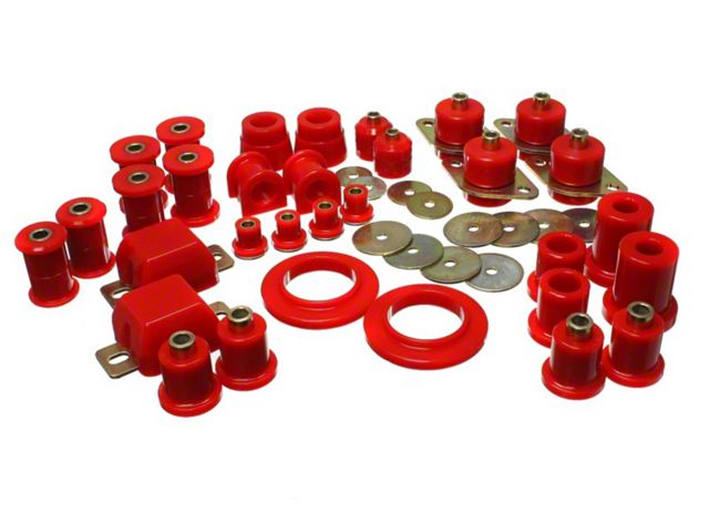 Energy's Hyper-Flex is superior performance polyurethane which has proven itself under the most demanding conditions on the race track, off-road and street performance driving, Hyper-Flex components do not wear or deteriorate from exposure to undercar chemicals such as oils and coolants and withstand atmospheric conditions like UV exposure and pollutants. Impervious to these elements, Energy's Hyper-Flex components are a great value. Not only will it outlast rubber 5 to 1 but are a cost effective performance improvement for your car or truck. Whether domestic or import, front, rear or 4WD, old or new, your vehicle will achieve that level of performance that has made Energy Suspension the most asked-for name in performance polyurethane components. All Hyper-Flex components are proudly Made in America and are available in red or black.