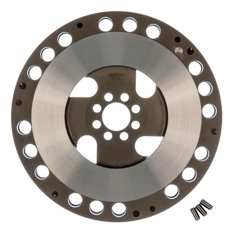 Exedy flywheels combine low weight, low inertia and high thermal capacity. They are designed for lightly tuned racing cars and drag racing, autocross and rally events, as well as street usage. They are made from solid one-piece billet chromoly steel or chromoly steel forgings. They are specifically designed to reduce weight and inertia for better engine response. Most incorporate special design features to enhance airflow and cooling of the clutch. The ring gear teeth are integrated onto the flywheel unlike an aluminum flywheel where the ring gear is pressed onto the flywheel and has the possibility of separating due to different expansion coefficients of aluminum vs. steel. Exedy steel billet and forged steel flywheels have passed engineering tests to 15,000-18,000 rpm and guaranteed not to fail to the said rpm and are all SFI approved.