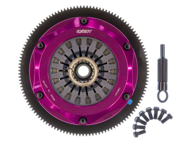 For high-powered applications, EXEDY offers twin and triple Multi-Plate clutches. These are designed for high power street action as well as drag, road and rally racing. The twin plate clutches are rated for approximately 500 ft/lbs of torque and the triple plates are rated for approximately 800 ft/lbs of torque, both figures at the flywheel. Twins come with both spring damper discs or solid discs depending on application, whereas triples are all solid discs and not recommended for street use.