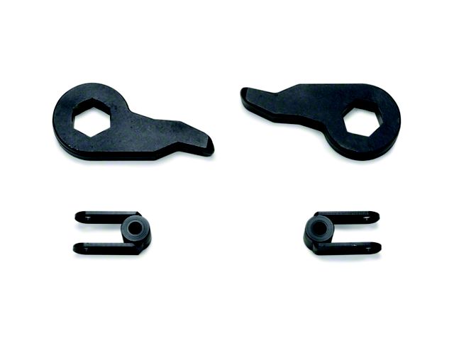 Fabtech Leveling Kits provide a small amount of lift for the front of the vehicle. This will typically help to level the stance of the vehicle's ride height front to rear as compared to the nose down appearance from the factory. With the added ride height it allows for the installation of larger tires and wheels for a more aggressive look. The installation of the kit is typically very simple and can be done with basic hand tools. There is no modification of the vehicle required for installation and can be returned back to stock if needed. All Fabtech Leveling Kits have undergone extensive engineering to properly function without placing the ball joints and tie rods into bind. This is an important feature as some taller kits on the market create bind and can result in failure of those parts over time. Fabtech offers an exclusive Trade Up program on all their Leveling Kits. If you ever want to step up to a complete 4'' or 6'' Fabtech'suspension system after you buy a Leveling Kit, you can trade in the previously purchased kit towards the price of a new Fabtech'system. Please see program details. All Fabtech Leveling Kits come with a free 5 year 60,000 mile Powertrain warranty. Please see program details. This system includes forged Torsion Keys and front shock extension mounts.