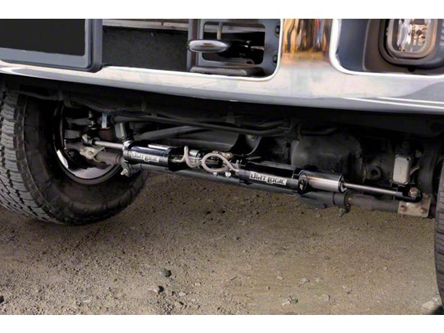 With the success of our Dirt Logic Dual Steering Stabilizers we now offer a remote reservoir design. This system provides increased control for Super Duty's with oversized tires while having the benefit of additional oil and nitrogen capacity in the remote reservoirs.