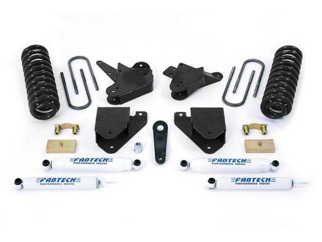 Utilizing the vehicle's stock I beams and radius arms the heavy duty 1/4'' thick brackets relocate these components with extended length coil springs for increased ride height and proper front suspension geometry. System includes heavy duty brackets, drop pitman arm, front and rear performance shocks and a rear block kit.