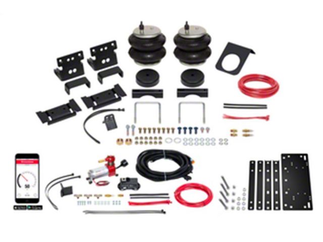 Firestone's original helper spring kit is designed to level loads when you are hauling or towing to eliminate squat and return the vehicle designed ride height. Paired with a single path analog compressor kit and no drill mounting plate. A true All In One kit with everything you need in one box for a quick and easy install.