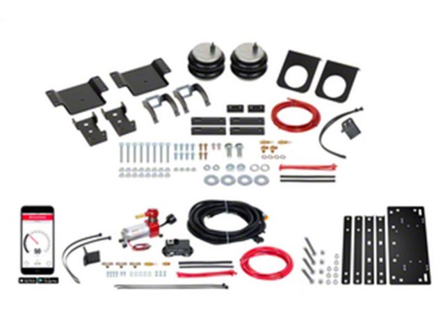 Firestone's original helper spring kit is designed to level loads when you are hauling or towing to eliminate squat and return the vehicle designed ride height. Paired with a single path analog compressor kit and no drill mounting plate. A true All In One kit with everything you need in one box for a quick and easy install.