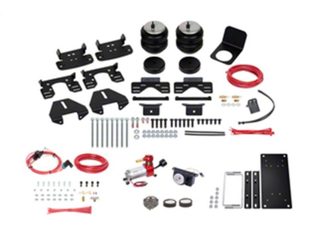 Firestone's original helper spring kit is designed to level loads when you are hauling or towing to eliminate squat and return the vehicle designed ride height. Paired with a single path analog compressor kit and no drill mounting plate. A true All In One kit with everything you need in one box for a quick and easy install.