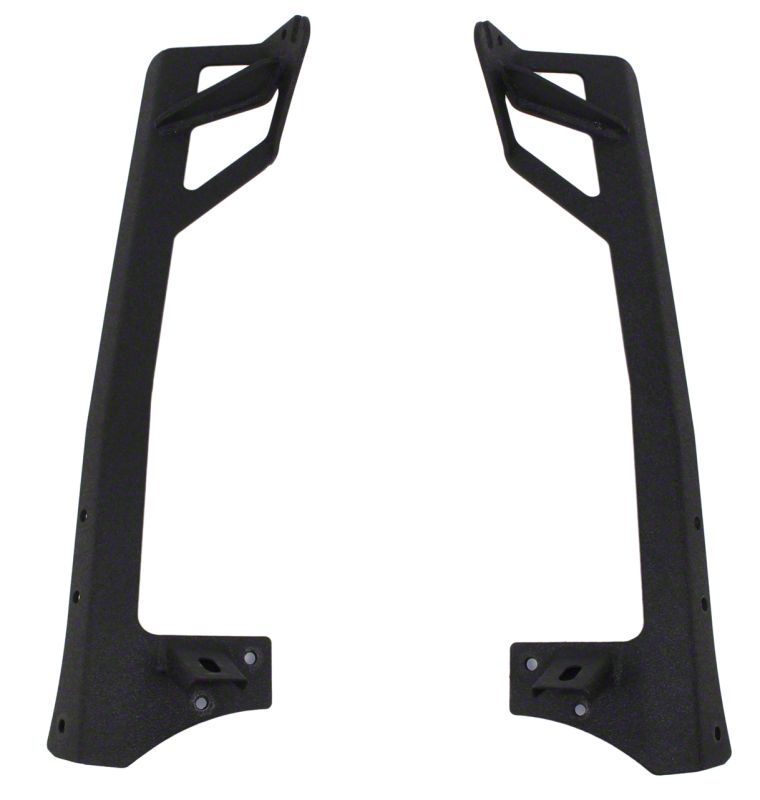 Fits 2007-2018 Jeep Wrangler JK and Jeep Wrangler Unlimited JKU, Black textured powder coat, designed for a 52" overall width light bar, includes pedestal mounts for 3x3 cube lights at the bottom of the windshield, Made from steel. Light bar sold separately.