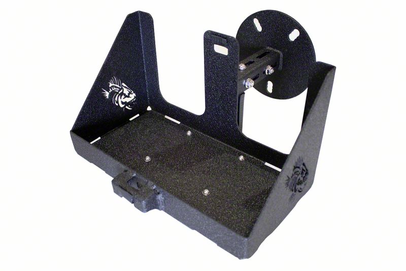 Easily carry your Jerrycan on any Jeep with a Tailgate Mounted Tire Carrier. Fits various bolt patterns, mounts to factory spare tire carriers. Includes a 7 ft. black nylon ratchet strap and stainless steel hardware for adjustable and easy installation.
