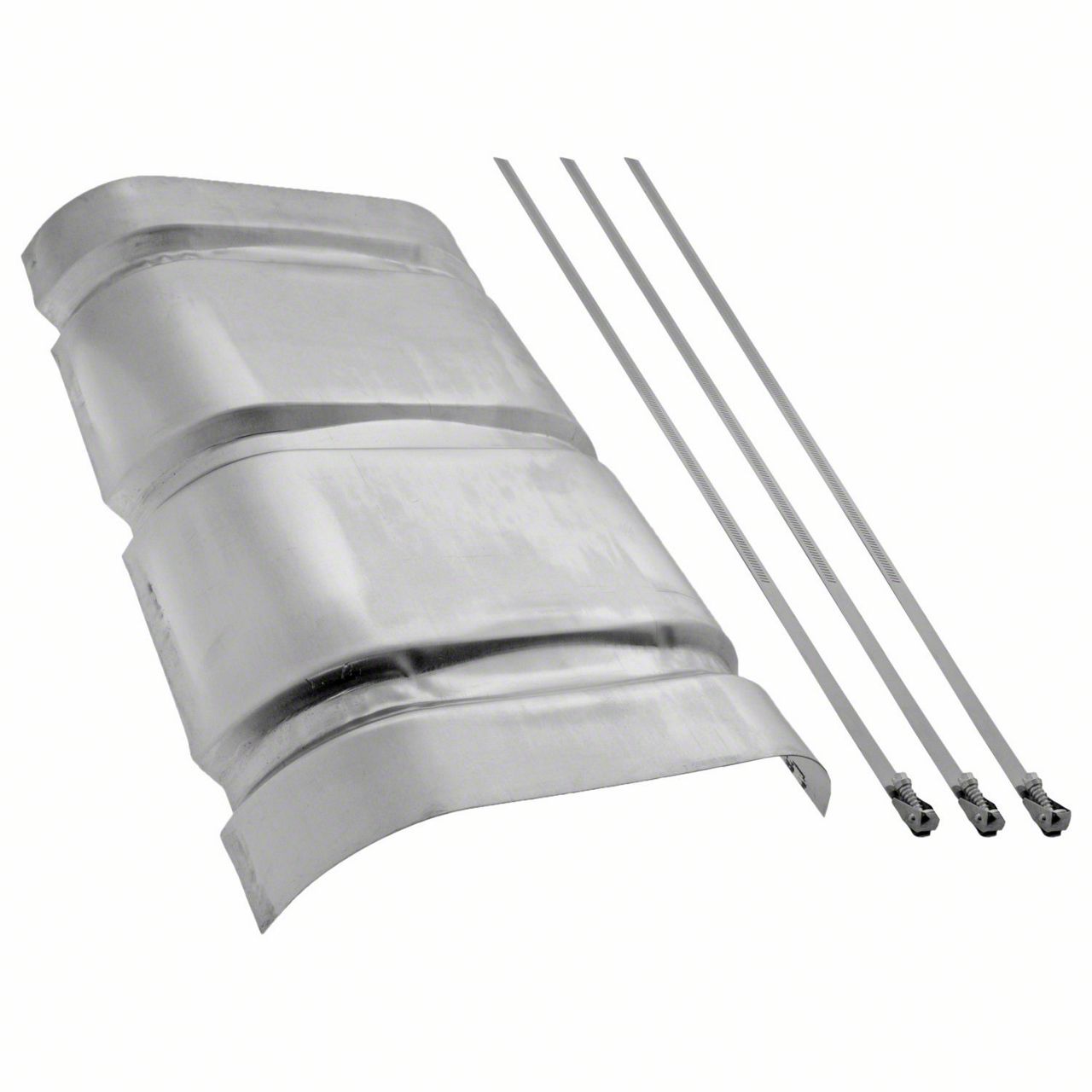 This custom-designed aluminum heat shield is pre-formed to fit all Flowmaster Super 50 Series mufflers and attaches easily with the included stainless steel straps. It reduces exhaust heat radiated through the muffler, protects vehicle floor boards, and helps lower interior noise. May fit any muffler with approximate dimensions of 5.00″ tall × 11.00″ wide × 17.00″ long.