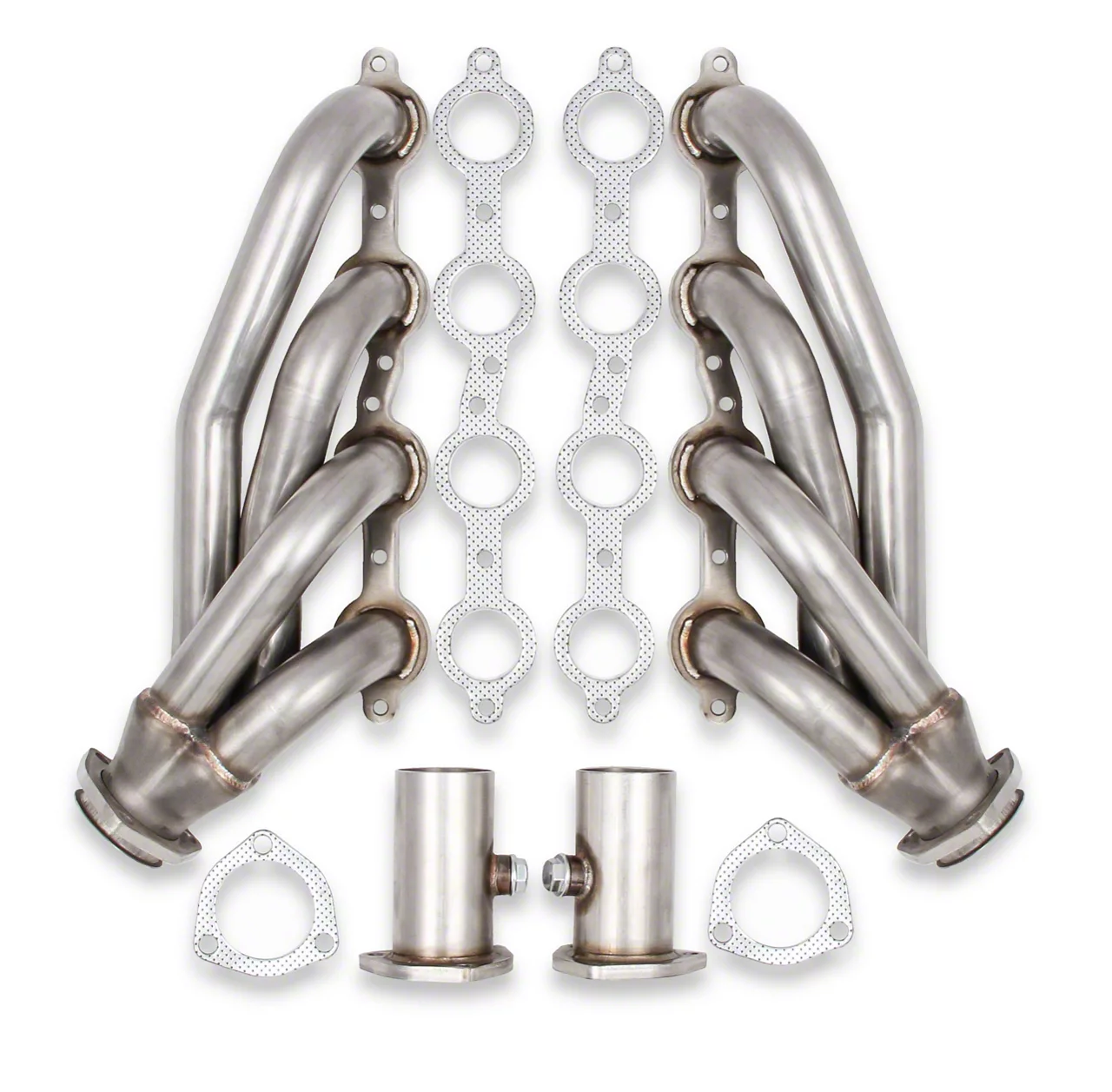 Construction and Appearance. Crafted from durable 304 stainless steel, the Flowtech LS Swap Shorty Headers offer long-lasting strength and resistance against corrosion. Each unit is Natural for a rugged and professional finish, giving the engine bay a refined look while maintaining robust performance. The mandrel-bent primary tubes and thick flanges provide both strength and precision for enhanced exhaust sealing and durability.