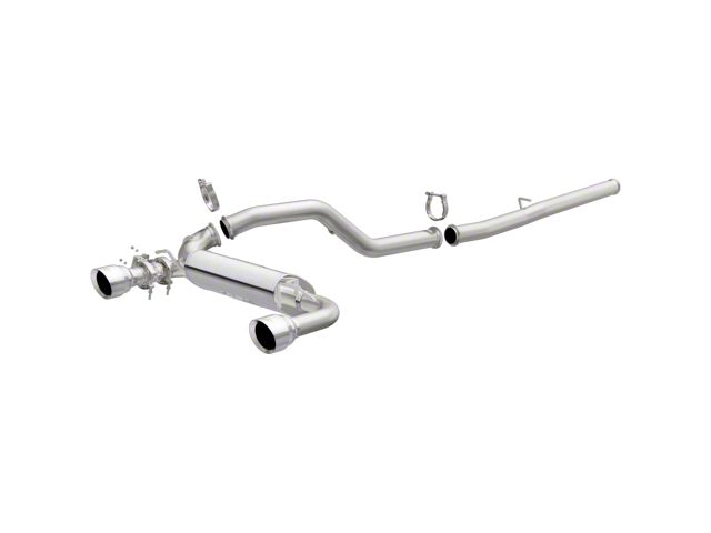 The MagnaFlow 2016-2018 Ford Focus Competition Series Cat-Back Performance Exhaust System 19281 brings an aggressive, attention-grabbing edge to the deep resonant exhaust note we're so well known for. This exhaust kit is designed to enhance your 2.3L 2016-2018 Ford Focus with dyno-proven performance made possible thanks to fast-flowing mandrel bent 3in. main piping and 1 Straight-Through mufflers ending in a Dual Split Rear exit with 4.5in. Polished Welded-On Double Wall Angle Cut Folded Edge tips featuring a sporty finish. The exhaust system's cat-back layout replaces your ride's exhaust system from near the catalytic converter on back. Exhaust system 19281 is engineered to make your vehicle's engine produce Aggressive exterior and Moderate interior sound levels, befitting its competition-oriented design. 19281's direct-fit design makes installation a breeze thanks to the use of advanced 3D scanning techniques. This performance exhaust system is made of 100% durable and corrosion-resistant stainless steel and produced using CNC precision robotic manufacturing, all backed by MagnaFlow's limited lifetime warranty. Please check to ensure compliance with local noise regulations.