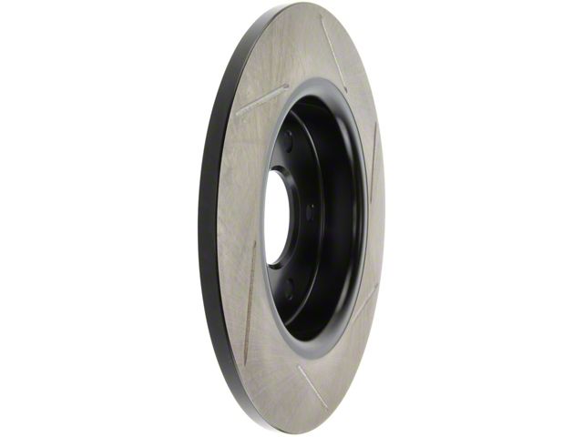 StopTech Slotted Sport Rotors are 1-piece direct replacement brake discs for factory brake systems and stock calipers that look great behind your wheels and offer significantly improved braking performance. The unique slotting aids with heat and brake dust dispersal, prevents glazing of the pads, adds bite, and improves wet and dry braking performance. Built to last, the black e-coating provides protection from corrosion and the high carbon metallurgy (in most applications) offers quieter operation, better crack resistance, and increased performance.