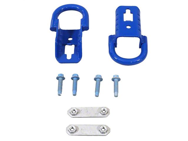 Quickly and easily add a look and unique style to the front of any 2017-2021 Super Duty; This kit features a pair of steel, powder coated tow hooks in Ford Performance blue color.
