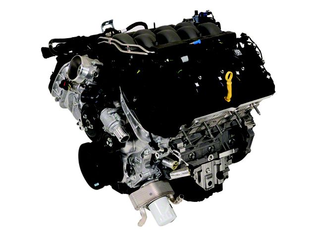 The Ford Performance all-aluminum 2018 5.0L Coyote crate engine is a modern 5.0L 32-valve DOHC V-8 that uses advanced features like Direct and Port Fuel Injection, Twin Independent Variable Camshaft Timing (Ti-VCT), high-flow cylinder heads, and heightened compression ratio to deliver 460 horsepower @ 7000 rpm and 420 ft.-lb.+ of torque @ 4600 rpm (with premium fuel). The lightweight plasma transferred wire arc spray aluminum cylinder block features cross-bolted main bearing caps and thick main bearing bulkheads for bottom-end strength, optimized oil drainback and windage control to improve high-rpm performance.