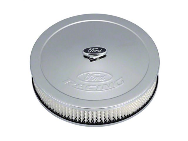 Add a Ford RACING, MUSTANG or COBRA Air Cleaner to your engine for that customized look. These 13 in. diameter air cleaners fit both 2 barrel and 4 barrel carburetors and include a high-performance filter element. Ford logo air cleaner center nut is also included.