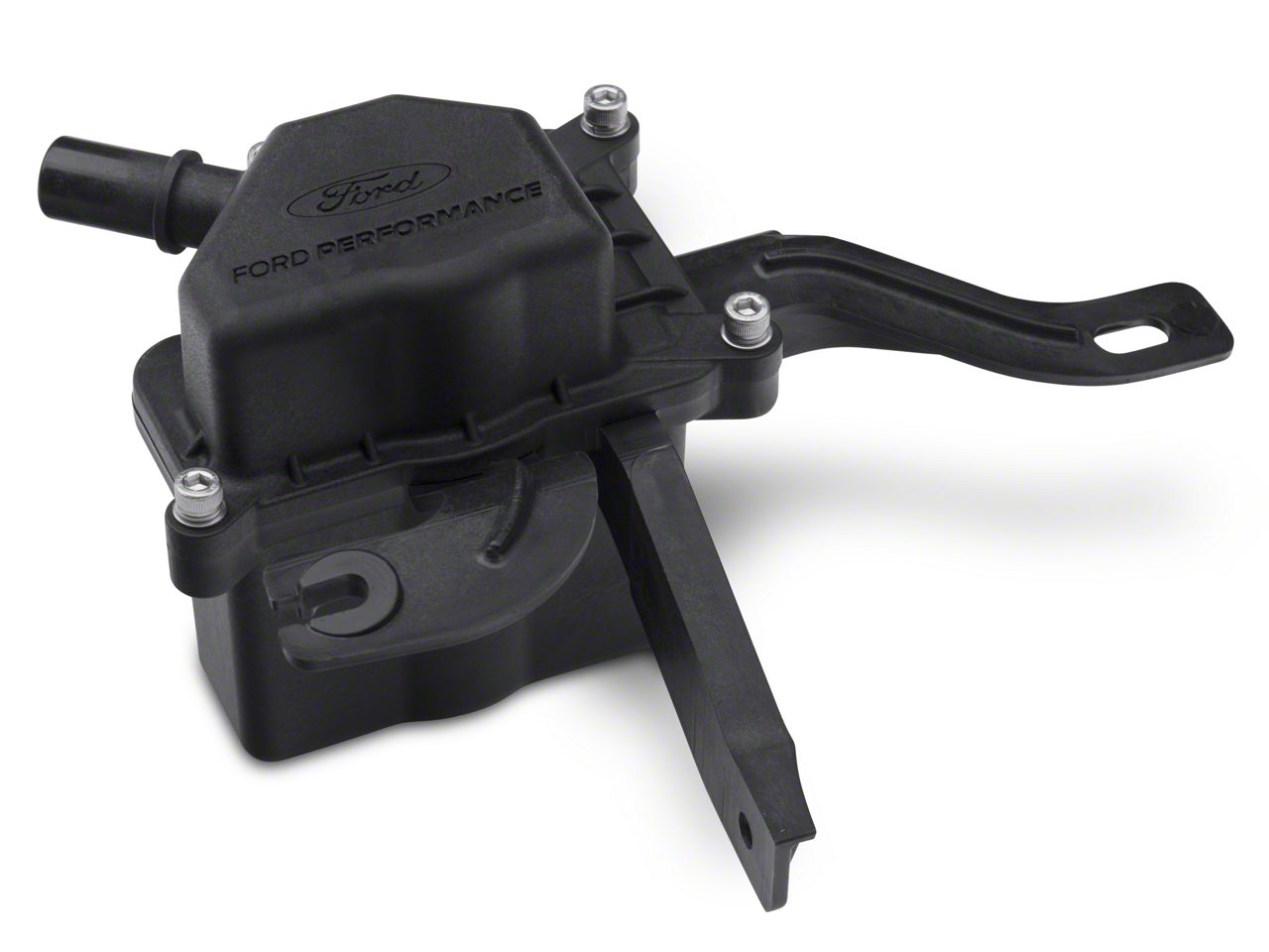 Ford Performance Parts Oil- Air Separator is precision molded canister with unique filter media separates oil vapor from the air in the PCV system. Designed and engineered specifically for installation on the Ford 5.0L Coyote Engine. All OEM hoses and fittings are used for a high quality installation and function. This is a highly engineered system, not a universal 'fits-all' kit.