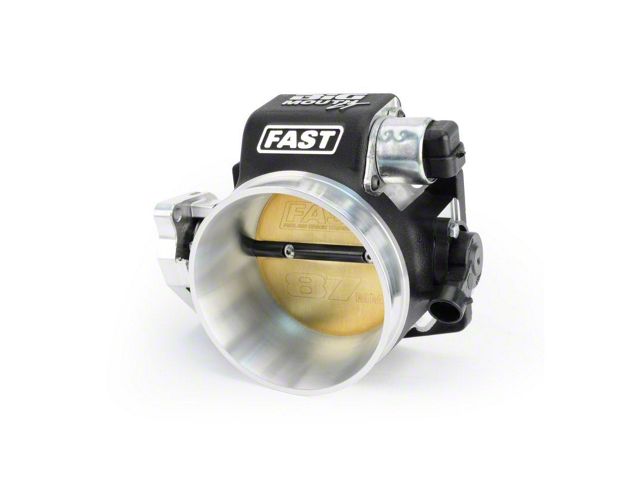 These throttle bodies offer increased throttle blade thickness to eliminate deflection commonly found with other throttle bodies, especially those used in boosted applications. A smoother operating offset blade pivot improves throttle response, while a beefed up linkage and dual throttle spring mechanism ensure total throttle control. Constructed from billet aluminum, the FAST Big Mouth LT for Ford Coyote and Chrysler Hemi applications are new and improved versions of the original Big Mouth Throttle Body. With an 87mm throttle bore for the Ford Coyote and Chrysler HEMI, each one features a black-wrinkle powder coating and all of the same features as the original.