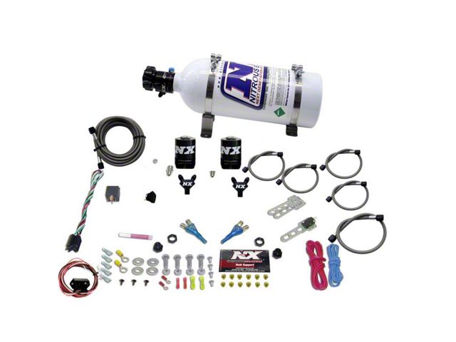 Nitrous Express has combined performance, quality and easy installation in this new nitrous system engineered specifically for Nissans and Infinities. This system includes an Autolearn TPS switch which allows the nitrous to activate only at wide open throttle. A direct-plug-in Fuel Line Adapter is provided to simplify installation (no need to cut your factory fuel lines). The system also includes Lightning series fuel and nitrous solenoids, two Shark nozzles, two nozzle adapters, 5lb nitrous bottle with the new lightning 45 bottle valve, extra long stainless braided N2O line, stainless bottle brackets, master arming switch, relay, relay harness and all necessary hardware to complete the installation. Includes jetting for 35, 70, 100 and 150HP. With additional jets, this system can produce up to 300 wheel horsepower! Fits late model Nissans and Infinities including 350Z, 370Z, G35 and G37s.