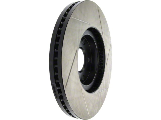 StopTech Slotted Sport Rotors are 1-piece direct replacement brake discs for factory brake systems and stock calipers that look great behind your wheels and offer significantly improved braking performance. The unique slotting aids with heat and brake dust dispersal; prevents glazing of the pads; adds bite and improves wet and dry braking performance. Built to last; the black e-coating provides protection from corrosion and the high carbon metallurgy (in most applications) offers quieter operation; better crack resistance and increased performance.