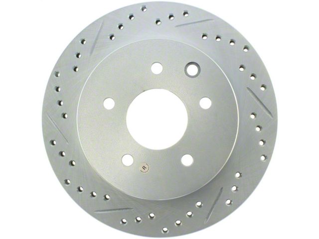 StopTech Drilled and Slotted Sport Rotors are 1-piece direct replacement brake discs for factory brake systems and stock calipers that look great behind your wheels and offer significantly improved braking performance. The unique cross-drilling and slotting aids with heat and brake dust dispersal; prevents glazing of the pads; adds bite and improves wet and dry braking performance. Built to last; the black e-coating provides protection from corrosion and the high carbon metallurgy (in most applications) offers quieter operation; better crack resistance and increased performance.
