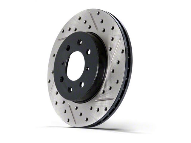 StopTech Drilled and Slotted Sport Rotors are 1-piece direct replacement brake discs for factory brake systems and stock calipers that look great behind your wheels and offer significantly improved braking performance. The unique cross-drilling and slotting aids with heat and brake dust dispersal; prevents glazing of the pads; adds bite and improves wet and dry braking performance. Built to last; the black e-coating provides protection from corrosion and the high carbon metallurgy (in most applications) offers quieter operation; better crack resistance and increased performance.