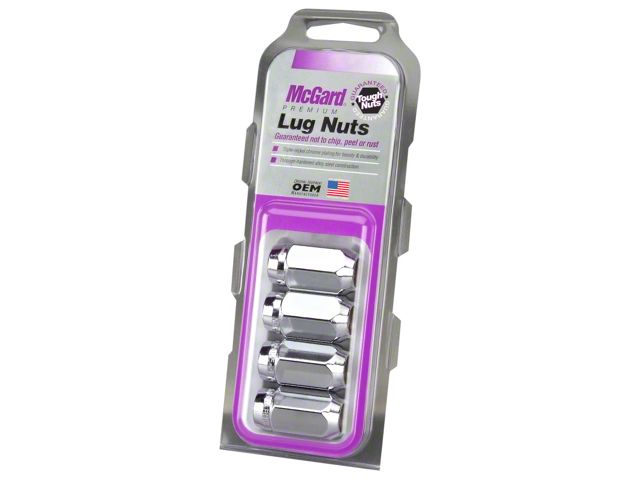 Chrome plated lug nuts lead a tough life. Think about it, harsh elements, nasty corrosive wheel cleaners and lead-foot drivers. Not to mention overzealous impact guns and loose fitting lug wrenches. This kind of treatment destroys ordinary lug nuts which turns even the best looking wheels ugly. Tough Nuts can take the punishment and keep your wheels looking beautiful. Tough Nuts are guaranteed for life not to rust, chip or peel. McGard manufactures lug nuts in the USA to meet or exceed O.E.M. standards for safety and durability. Every lug nut is fully machined from restricted chemistry steel made specifically for McGard and through-hardened for its unsurpassed level of safety. McGard's plating process includes several layers of nickel and one layer of microporous chrome producing a superior finish while protecting against rust. Tough Nuts are designed and built for the real world, because life is tough. For use with steel or aluminum wheels with exposed decorative lug nuts that are tapered at the bottom. This product may contain globally sourced materials/components.