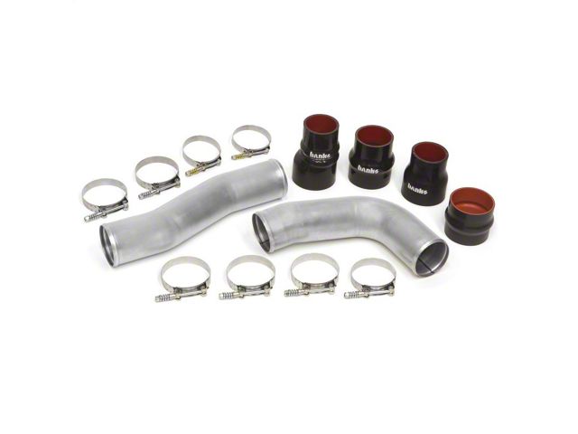 Banks hot and cold side tubes have up to 65 percent greater flow area than stock tubes. Produced from high-quality aluminized steel, the tubes are mandrel bent and constant diameter. This allows for quicker turbo spool. Better flowing intercooler tubes improve retention of boost pressure (increases density) between turbo, intercooler, and intake resulting in maximum horsepower. Our red powder-coat or natural finish stops before the end of the tubes for better grip ensuring our 4- and 5-ply heavy-duty high-temperature silicone couplers hold tight under high-boost conditions. Spring-loaded constant tension clamps maintain a stronger grip to prevent leaks or blown boots.