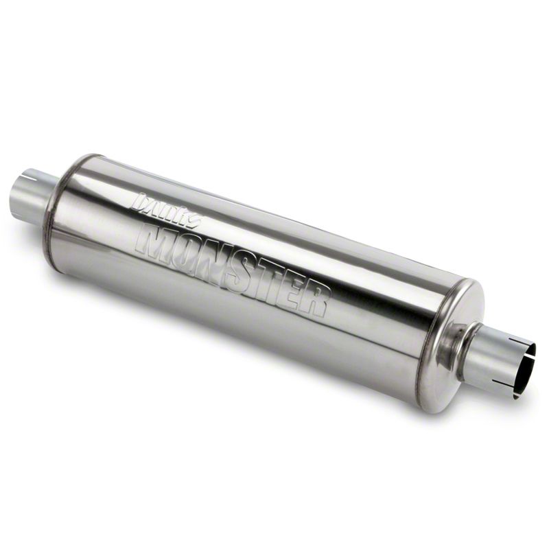 Monster Exhaust Benefits. Replacing the restrictive stock muffler with Banks free-flowing Monster muffler makes a huge difference in airflow, sound and performance. The Banks muffler has a large inlet and outlet. And in between, the exhaust flows straight through, instead of torturously winding its way back and forth inside hairpin chambers and building up back-pressure. And only Banks Monster muffler has an expansion chamber to alleviate the nasty drone that other straight-through mufflers are known for. Banks utilizes durable ceramic packing with a high temp rating so it won't degrade like fiberglass. Add it all together and you get a muffler that flows over three times better than stock and delivers a pleasing, throaty rumble!