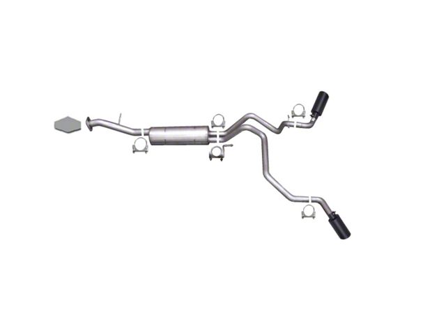 For the extremist who wants to take their truck to the next level, this Black Elite dual bolt-on Cat back system is for you. This system exists behind the rear tires at an aggressive angle with a powerful exhaust tone. Each T-304 stainless tip is offered with a premium black finish applied with Gibson's formulated process exclusive only to the Black Elite Series You will gain bold street looks with dyno tuned and tested street performance gains. For increased Performance, this exhaust system pushes the sound through our proven stainless steel Superflow Muffler giving you a vigorous deep tone. It's manufactured with high quality stainless steel tubing and backed by a limited lifetime warranty. With this perfect combination, Gibson Performance exceeds expectations with the ability to offer quality and style while being Made in the USA.