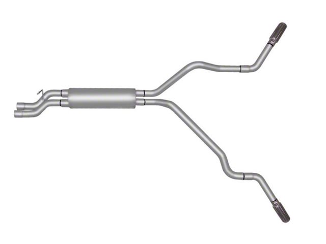 For the extremist who wants to take their truck to the next level, this dual bolt-on Cat back system is for you. This system exists behind the rear tires at an aggressive angle with a powerful exhaust tone. You will gain bold street looks with powerful dyno tuned and tested street performance gains. You can expect to experience gains on average of 15-20 horsepower. Gibson muffler provides a mean performance sound and complemented with polished Stainless Tip. Easy bolt-on installation. No welding required. Backed by a Lifetime Limited Warranty. If you want Extreme, this system is it.