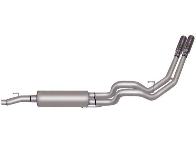 If you're looking to add a little style to your Truck or SUV and want to keep the exhaust from affecting your tow trailer, this Dual Cat back Exhaust System is for you, exiting behind the rear tire for a look that sets your vehicle apart on the street or in the dirt. Hassle free, bolt-on installation with professional looking results. No welding required. Backed by a Lifetime Limited Warranty. Gibson dual sport exhaust offers a powerful authoritative deep exhaust tone with no annoying noise inside the cab. Dyno tested to assure increased horsepower and produce more torque. Average horsepower gains are 10-15 and 15-20lb-ft of increase torque.