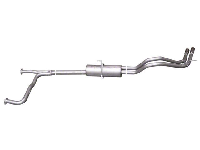 If you're looking to add a little style to your Truck or SUV and want to keep the exhaust from affecting your tow trailer, this Dual Cat back Exhaust System is for you, exiting behind the rear tire for a look that sets your vehicle apart on the street or in the dirt. Hassle free, bolt-on installation with professional looking results. No welding required. Backed by a Lifetime Limited Warranty. Gibson dual sport exhaust offers a powerful authoritative deep exhaust tone with no annoying noise inside the cab. Dyno tested to assure increased horsepower and produce more torque. Average horsepower gains are 10-15 and 15-20lb-ft of increase torque.