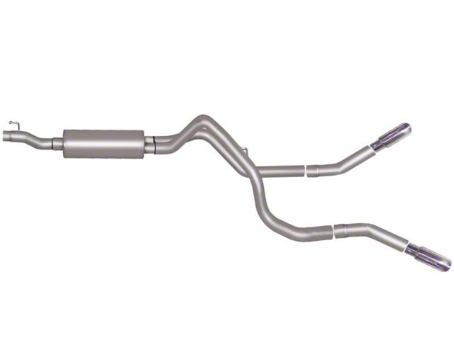 For the extremist who wants to take their truck to the next level, this dual bolt-on Cat back system is for you. This system exists behind the rear tires at an aggressive angle with a powerful exhaust tone. You will gain bold street looks with powerful dyno tuned and tested street performance gains. You can expect to experience gains on average of 15-20 horsepower. Gibson muffler provides a mean performance sound and complemented with polished Stainless Tip. Easy bolt-on installation. No welding required. Backed by a Lifetime Limited Warranty. If you want Extreme, this system is it.